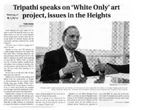 Tripathi speaks on 'White Only' art project, issues in the Heights, November 9, 2015 Photocopied pages of The Spectrum article "Tripathi speaks on 'White Only' art project, issues in the Heights" by Tom Dinki, November 9, 2015.