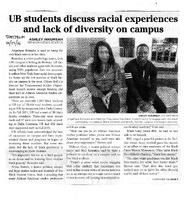 UB students discuss racial experiences and lack of diversity on campus, October 17, 2016 Photocopied newspaper pages of The Spectrum article "UB students discuss racial experiences and lack of diversity on campus" by Ashley Inkumsah, October 17, 2016.