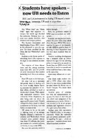 Students have spoken -- now UB needs to listen, September 28, 2015 Photocopied newspaper pages of The Spectrum article "Students have spoken -- now UB needs to listen," September 28, 2015.