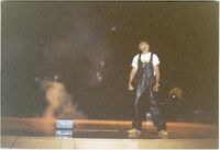 Performer on stage, circa 2000s Color photograph of a performer onstage in the Student Union Theatre at a Black Student Union event, circa 2000s.