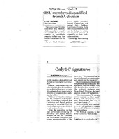 BSU members disqualified from SA election, March 4, 2009 Photocopied newspaper clipping of The Spectrum article "BSU members disqualified from SA election" by Ren LaForme, March 4, 2009.