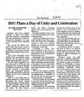BSU Plans a Day of Unity and Celebration, November 1, 2004 Photocopied newspaper clipping of The Spectrum article "BSU Plans a Day of Unity and Celebration" by Juby Kuriakose, November 1, 2004.