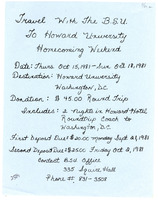 Howard University Homecoming Weekend Flyer, October 15-18, 1981 Handwritten flyer for the Black Student Union's homecoming weekend trip to Howard University from October 15-18, 1981.