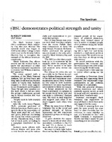 BSU demonstrates political strength and unity, undated Photocopied newspaper clipping of The Spectrum article "BSU demonstrates political strength and unity" by Keeley Sheehan, undated.