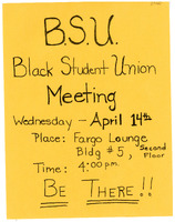 General board meeting flyer, April 14, 1982 Handwritten flyer for Black Student Union's general board meeting on April 14, 1982.