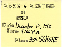 Mass Meeting flyer, December 10, 1980 Photocopied hand-drawn flyer for the Mass Meeting of Black Student Union on October 10, 1980.