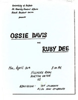 Ossie Davis and Ruby Dee visit flyer, 1972 Photocopied hand-drawn flyer for Ossie Davis and Ruby Dee's visit to the University at Buffalo on April 30, 1972. Event co-sponsored by the Student Association for Minority Student Affairs and the Black Student Union.