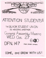 General assembly meeting flyer, October 27, 1982 Handwritten flyer for Black Student Union's general board meeting on October 27, 1982.