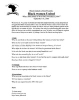Black women United handout, September 18, 2006 Typed handout with information about the prompt "What does means to be a black woman in 2006?" for the Black Student Union's Black women United event on September 18, 2006.