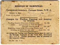 Cemetery card for Charlotte Mew's grave in Hampstead Cemetery, 1928 Cemetery card for Charlotte Mew's grave in Hampstead Cemetery, 1928.