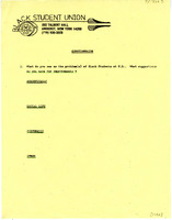 Questionnaire, 1982 Typed questionnaire by the Black Student Union asking Black University at Buffalo students about problems and suggestions for improvement in academics, social life, culture, and other, 1982.