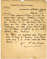 Autograph letter signed from Charlotte Mew to Alida Klementaski Monro, May 29, 1918 Autograph letter signed from Charlotte Mew to Alida Klementaski Monro dated May 29, 1918. Charlotte Mew quotes Lord Byron ("Man's love is of man's life a part; 'tis woman's whole existence.") and illustrates the quote with an ink drawing. In the drawing, a seated man reads the newspaper and smokes a pipe while a woman who is knelt before him removes his shoes.