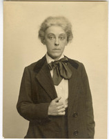 Photograph of Charlotte Mew, undated An undated, black-and-white photograph of Charlotte Mew. Mew has short, light-colored hair and is wearing a pinstripe suit coat, tie, and ring on her middle finger.