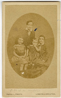 Photograph of Charlotte Mew and her siblings, July 9, 1876 Photograph of Charlotte Mew and four siblings dated July 9, 1876. A note in pencil reads "C.M. is in middle."