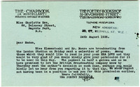 Typed letter from the Poetry Bookshop to Charlotte Mew, August 24, 1926 Typed letter from the Poetry Bookshop to Charlotte Mew dated August 24, 1926 with original envelope.