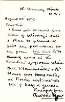 Autograph letter signed from Charlotte Mew to the Poetry Bookshop, August 25, 1926 Autographed letter signed from Charlotte Mew to the Poetry Bookshop dated August 25, 1926.