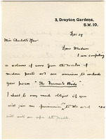Autograph letter signed from Charlotte Mew to Miss E. Oliver, July 24, 1909 Autograph letter signed from Charlotte Mew to Miss E. Oliver dated July 24, 1909.