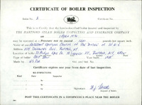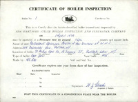 Certificate of Boiler Inspection, April 1, 1976 Document given to the Protestant Episcopal Church of the Diocese of Western New York certifying that Boiler Number 1 at St Phillips Episcopal Church has passed boiler inspection by the Hartford Steam Boiler Inspection and Insurance Company, April 1, 1976.