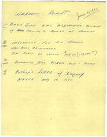 Warden's report, June 4, 1972 Handwritten warden's report, June 4, 1972. Written on the back of notice and agenda for the regular monthly meeting of the vestry and vestry associates of St. Philip's Episcopal Church on June 4, 1972.