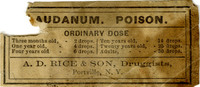 Laudanum dosage instructions, undated Paper slip with dosage information for laudanum from A. D. Rice and Son, Druggists, undated.
