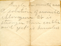 Knitting pattern and medicinal formulae, undated Handwritten knitting pattern for mittens and formulae for lime and soda and pastilles for asthma, written by Mrs. Dr. S.C. Haskell, undated. Medical instructions written by Dr. Frances Proctor Ames on back, undated.