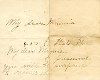 Note to Minnie written by Dr. Frances Proctor Ames, undated Medical note written to a Minnie by Dr. Frances Proctor Ames, undated.