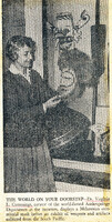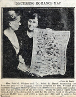 Zonta Romance Map with its author Josephine Wickser and first purchaser Dr. Edith R. Hatch In a photograph by Beach, Romance Map creator Josephine Wilhelm Wickser and its first purchaser Dr. Edith Hatch examine and discuss sales of the map which was produced to fund education for underprivileged girls.