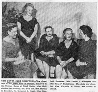 Zonta Directors for 1956 gather in the Hotel Statler Terrace Room after their election Buffalo Zonta directors elected for 1956-1957 at the Hotel Statler included (left to right): Mrs. Marion R. Benedict, Dr. Margaret A. Grant, Elizabeth Bondeson, Louise C. Goodyear and Rose F. Steinkrauss