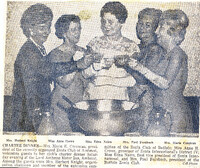 Mrs. Marie K. Corcoran, President of the Zonta Club of Amherst, toasts to its success with officers at its Charter Dinner in 1965 Zonta Club of Amherst was officially chartered in 1965 and was organized under the sponsorship of Buffalo Zonta. Celebrants at the Amherst Zonta Charter Dinner included (left to right): Mrs. Herbert (Ella) Knight, Miss Anne Crowe, Miss Edna Nairn, Buffalo Zonta President Mrs. Paul (Betty) Fernbach and Amherst Zonta President Miss Marie K. Corcoran.