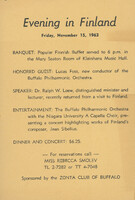 Program from the 1963 Evening in Finland event sponsored by Buffalo Zonta Buffalo Zonta's Evening in Finland program included a banquet, guest speaker and entertainment by the Buffalo Philharmonic Orchestra conducted by honored guest Lucas Foss in Kleinhans Music Hall