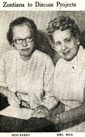 Miss Margaret J. Barry discussing upcoming projects with Buffalo Zonta President Mrs. Walter J. (Esther) Rick Chairman of the Buffalo Zonta Ways and Means Committee Miss Margaret J. Barry and Zonta Buffalo President Mrs. Walter J. (Esther) Rick making plans for upcoming fund-raising projects