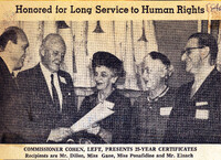 Long-time Zontian Miss E. Marguerite Gane is honored along with colleagues for her 25 years of dedicated service to human rights Miss E. Marguerite Gane (center), accepted the 25-year certificate honoring her tireless service to human rights from Commissioner Emil L. Cohen (far left), a State Human Rights Commissioner, surrounded by fellow honorees (left to right): Robert E. Dillon, Elizabeth Ponafidine and Victor Einach