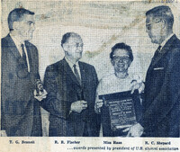 Long-time Buffalo Zontian Miss Dorothy M. Haas, University of Buffalo Coordinator of Student Services, won the 1965 Samuel P. Capen Award University of Buffalo's Samuel P. Capen Award was the highest honor bestowed by the Alumni Association and is presented to Dorothy M. Haas (second from right) by the president of the UB Alumni Association Richard C. Shepard (far right) with other award recipients Thomas G. Bennett and Richard R. Fisher looking on.