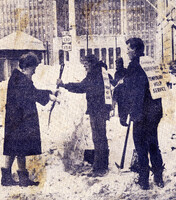 Buffalo Zontian Mrs. Nat Barrell instructs a snow shoveling squad courtesy of Manpower, Inc. in downtown Buffalo, New York Buffalo Zontians, including the regional manager of Manpower Inc. Mrs. Nat Barrell (far left), took part in a special helping hands project to clear snow from downtown Buffalo crosswalks