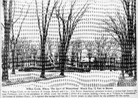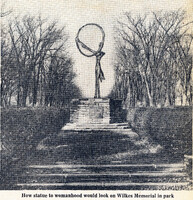 Composite drawing and photograph of 'The Spirit of Womanhood' statue honoring Zonta founder Marian de Forest A combination of drawing and photography is utilized to demonstrate how 'The Spirit of Womanhood' statue designed by Larry W. Griffis, Jr. might appear on its proposed Wilkes Park site. The very modern design of the statue which was intended to honor Zonta founder Marian de Forest became a point of controversy at the time.