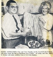Zontian Mary S. Switzer, hostess of WBEN-TV 'You and Your Family', visited the Erie County Fair to display elements from the 4-H Club exhibit Mary S. Switzer (right) served as Erie County Home Demonstration agent for many years and also as hostess of the WBEN-TV public service program 'You and Your Family'. She and 4-H official Al Lasky broadcast from the Erie County Fair in 1961.
