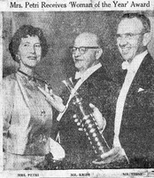 Buffalo Zontian Mrs. Pitt Petri received the 1961 Woman of the Year Award from the Buffalo Philharmonic Orchestra Society Mrs. Pitt Petri (left) was an active supporter of the Buffalo Philharmonic Orchestra as a member of the Philharmonic Women's Committee and, in 1961, she received the Buffalo Philharmonic Orchestra Society's Woman of the Year Award. In attendance for the presentation was Buffalo Philharmonic conductor Josef Krips (center) and Buffalo Philharmonic Society President Franz T. Stone (right).