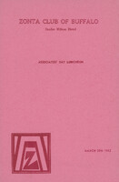 Cover of the Buffalo Zonta 1962 annual Associates' Day Luncheon program Zonta Club of Buffalo Associates' Day Luncheon program held March 20, 1962 at the Statler Hilton Hotel and hosted by Buffalo Zonta President Virginia L. Cummings