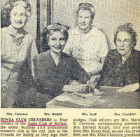Zonta officers sign their pledges to join in the Buffalo Crusade for Safety Buffalo Zonta officers concerned with safety include (left to right): Secretary Mrs. Marie K. Corcoran, First vice president Mrs. Herbert (Ella) Knight, Second vice president Mrs. Henry (Betty L.) Senf and President Mrs. Ethel M. Chandler