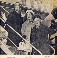 Representatives from Buffalo Zonta depart for Japan to attend an inauguration dinner for the first Zonta Club in Japan Buffalo Zontians that traveled to Japan to inaugurate the first Japanese Zonta Club included (left to right): Miss Kathleen Sweeney, Miss Hilda L. Goltz and Miss Hilda Weis