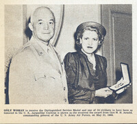 Zontian pilot Jacqueline Cochran was presented with the Distinguished Service Medal by U.S. Army Air Forces General H. H. Arnold in 1945 Woman pilot Jacqueline Cochran was only woman to receive Distinguished Service Medal (DSM), the highest non-combat award presented by the United States government, for her wartime service as director of the Women Airforce Service Pilots (WASP)