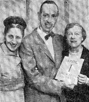 Local WBEN TV personality Mildred Miller hosted an April Fool's Party with fellow Zontian City Court Judge Madge Taggart Mildred Miller, together with her husband Bill, was a popular hostess of the local WBEN TV interviewing and cooking program 'Meet the Millers'. She also was very active in local women's organizations and helped to promote their charitable fund raising activities at every opportunity. Pictured (left to right) are: Mildred Miller, Bill Miller, Judge Madge Taggart
