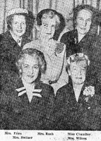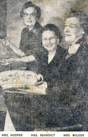 Zontian chairpersons display items to be included in their fund-raising indoor flea market Buffalo Zontian chairpersons included (left to right): Mrs. Hooper, Mrs. Benedict and Mrs. Wilcox