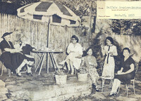 Broadcaster Helen Neville is honored at a tea at her home by members of Zonta and other local women's organizations Attendees at the tea for Helen Neville include (left to right): Buffalo Zonta President Mrs. Andrew J. (Mary S.) Switzer, Helen Neville (serving tea), Julia O'Meara of the Pen Women's Club, Buffalo Zontians Marjorie M. Baker and Judge Madge Taggart, Mrs. Albert C. Huetter, president of Advertising Women of Buffalo, and Mary E. Solat of American Women in Radio and TV