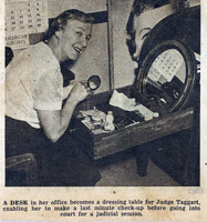 Buffalo Zontian Judge Madge Taggart utilizes a desk drawer to make up prior to appearing on the bench A converted desk drawer becomes a dressing table for Judge Madge Taggart to prepare before going into court for a judicial session
