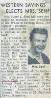 Former Buffalo Zonta president Betty L. Senf was promoted to assistant vice president at Western Savings Bank Buffalo Zonta past president Betty L. Senf's promotion at Western Savings Bank represents the highest position ever attained by a woman at the bank.