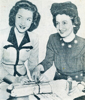 Buffalo Zontians Mrs. Thomas J. Atcheson and Mrs. Harlow M. Davis wrap Christmas gifts Buffalo Zontians held a Christmas party with gifts for the Camp Fire Girls and Girl Scouts of Buffalo in 1942