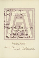 Award for Excellence in the 1955 District IV Press book Competition Annual awards for maintaining a pressbook was presented by each district within the Zonta International organization