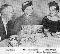 Zontians and their guests observe annual Bosses Day by taking their boss out to lunch Guest speaker Mrs. Grace L Hudowalski, travel program supervisor of the New York State Commerce Department, enjoyed luncheon with Zonta guests Mr. and Mrs. John Dwyer of Dwyers Pharmacy