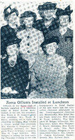 Buffalo Zonta Officers for 1943-1944 were installed at a Hotel Statler luncheon Buffalo Zonta officers installed at the 1943 luncheon included (seated, left to right): President Helen Z. M. Rodgers, First Vice President Zorah B. Berry and (standing, left to right): Gladys L. Crain, Mrs. Aloysius G. Stegmeier, Dr. Margaret Warwick Schley and M. Grace Schwinn